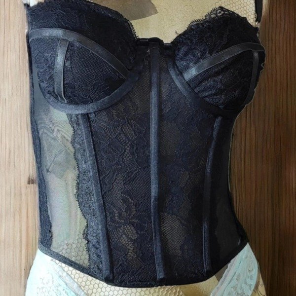 Corset de copa entera de microtul y puntilla de encaje con ballenas y espalda regulable